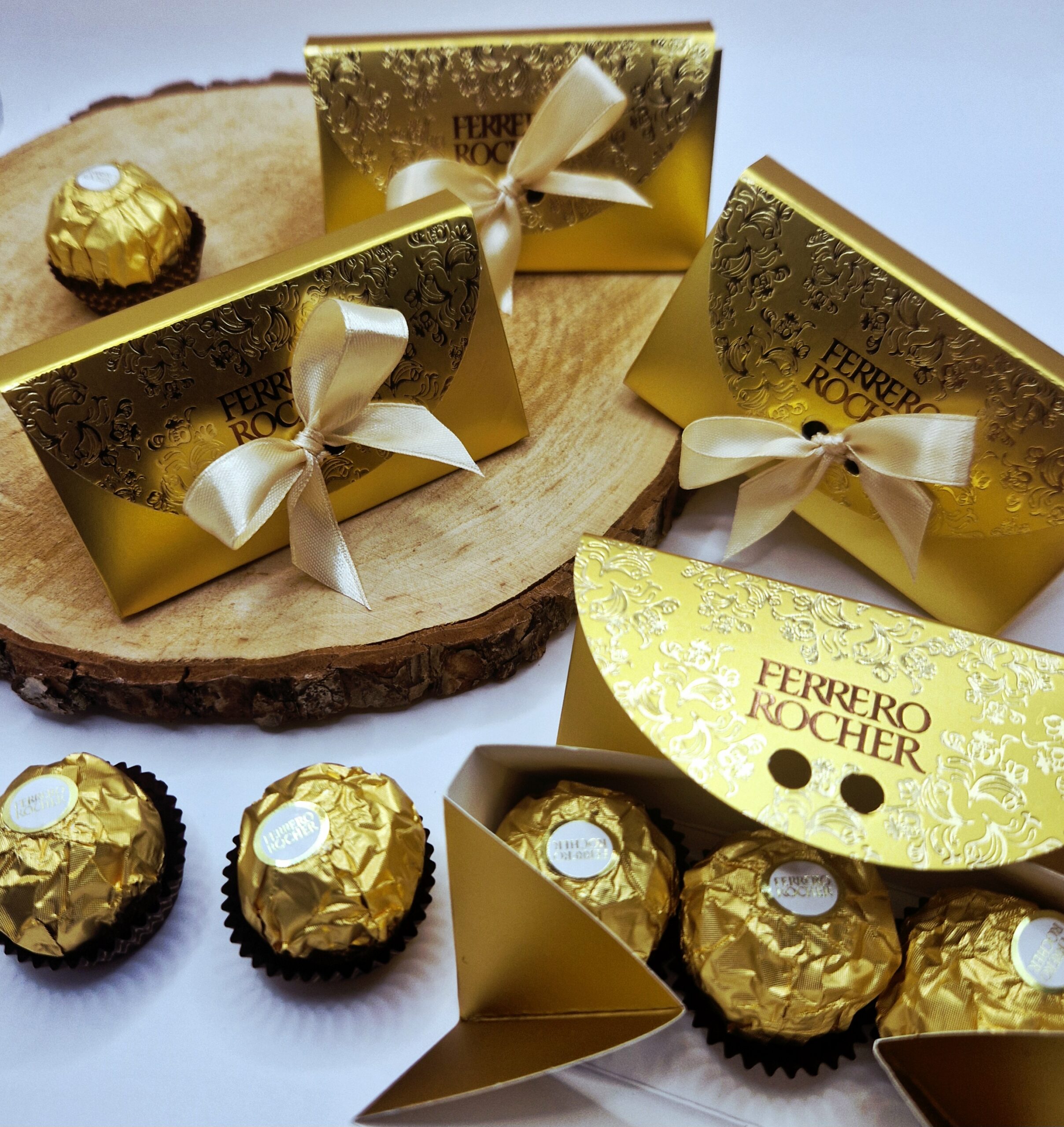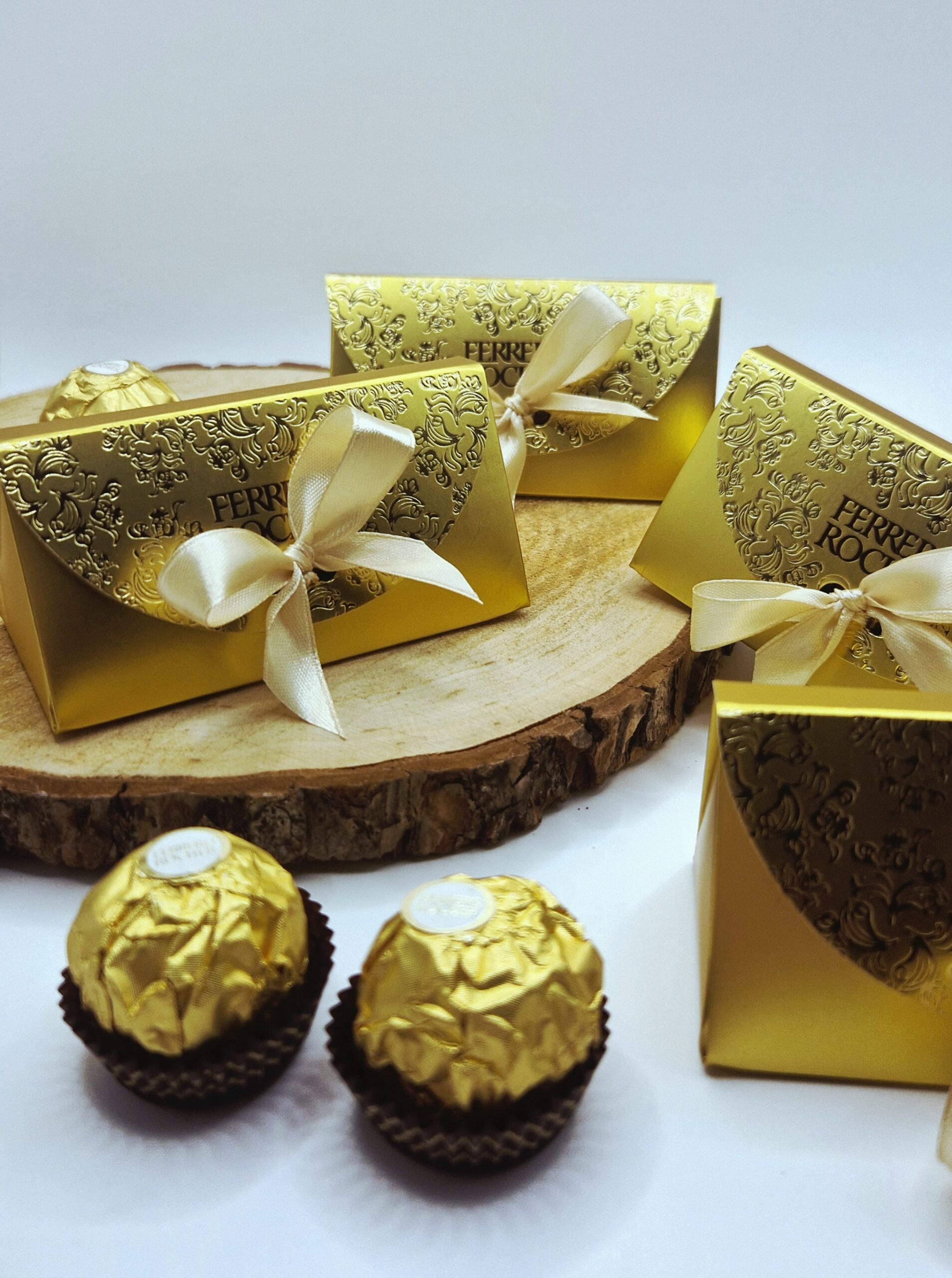 Podziękowania dla gości ( złote pudełka z FERRERO ROCHER )